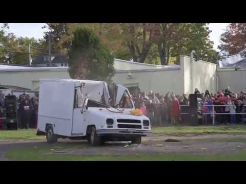 Z výšky okolo 120 stop svrhli dýni o hmotnosti okolo 1 200 pounds (cca 327 kg) na přistavěnou dodávku! Komentáře na video se různí. Jedni jej označují za zajímavou recesi a druzí jej odsuzují pro zbytečnost – každopádně video a zajímavá oslava příchodu podzimu se šíří rychlostí blesku internetem. Názor necháme po shlédnutí videa na Vás.
